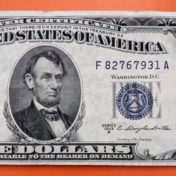 Vintage 1953 blue seal $5 bill silver certificate note old paper money American currency$25San Mateo, CA