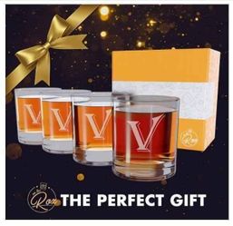 NEW On The Rox set of 4 glass heavy base 11 oz engraved with V monogram rocks drinking glasses tumblers$35San Mateo, CA