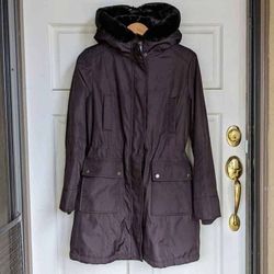 Andrew Marc New York size M medium dark brown faux fur hooded warm winter parka jacket overcoat$90San Mateo, CA