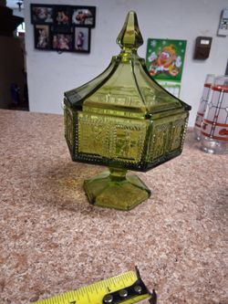 Vintage green Imperial glass octagon candy dish with lid.$20Fort Lauderdale, FL
