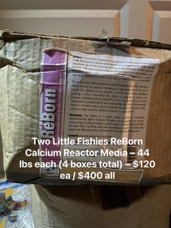 Two Little Fishies ReBorn Calcium Reactor Media – 44 lbs each (4 boxes total) – $120 ea / $400 all$120San Diego, CA