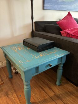 Blue End Table Solid Beachy Wood $10Costa Mesa, CA