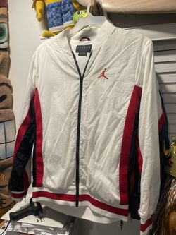 Michael Jordan Brand Size M White Nylon Jacket W/ Red And Black Stripes Full Zip$40Wildwood Crest, NJ