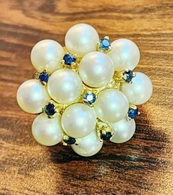14kt Solid Gold Pearl Cluster With Blue Sapphires $1,999Lakeside, CA