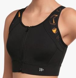 Yvette High Impact Zipper Front Sports Bra - Black/Orange Geometric - Size 2XL$25California City, CA
