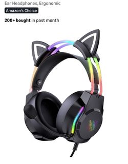 Gaming Headset with Microphone, Cat Ear Headphones for PC Laptop PS4 PS5 Xbox Switch, Rainbow RGB Lighting & Virtual Surround Sound, 3.5mm Wired Black$25West Covina, CA