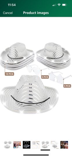 Brand New 20 PCS Cowboy Cowgirl LED Flashing Light Hats Glasses, Cowboy Hats and Heart Star Glasses for Western Cowboy Costume Sequin Hats$65West Covina, CA