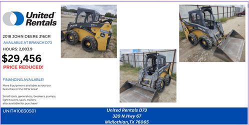 John Deere 316G $29,456Midlothian, TX