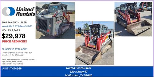 2019 TL6 Trackskidsteer$39,000Irving, TX