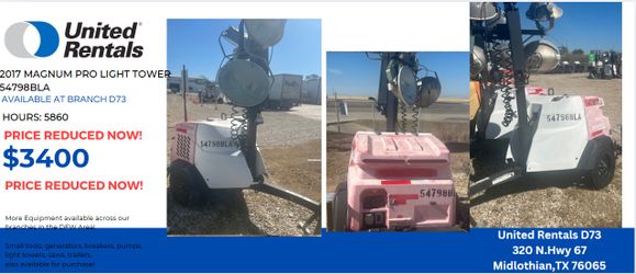2017 MAGNUM PRO LIGHT TOWER$3,400Irving, TX