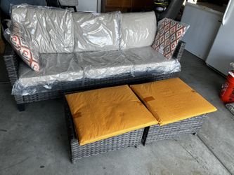 Patio Furniture, Outdoor Garden Sofa sectional, Wicker Patio Furniture with Wather Resistant Cushion and 2 Pillows (Beige/Grey)$200Moreno Valley, CA