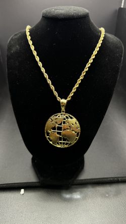 10K Gold rope necklace w world pendant 28” long 17.5g 3mm 3816 Steilacoom Blvd Lakewood WA crown Jewelry $1,789Tacoma, WA