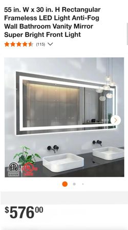 55 in. W x 30 in. H Rectangular Frameless LED Light Anti-Fog Wall Bathr$300Lansing, IL