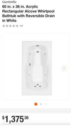 60 in. x 36 in. Acrylic Rectangular Alcove Whirlpool Bathtub with Reversible Drain in White$150South Holland, IL