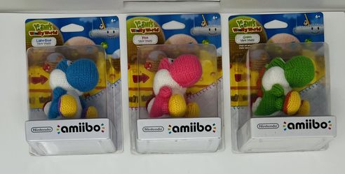 Nintendo Yarn Yoshi Amiibo Figures From The Yoshi's Woolly World series full set of green, pink, and light-blue colors.$250Shavano Park, TX