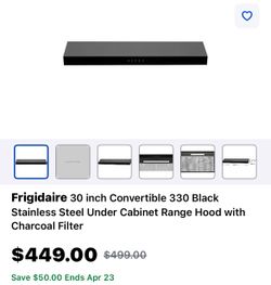 New In The Box Frigidaire 30 inch Convertible 330 Black Stainless Steel Under Cabinet Range Hood with Charcoal Filter $449.00$250Atco, NJ