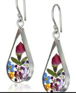 Sterling Silver Dried Flower in Acrylic Dangle Teardrop Hook Earrings Mexico$45Phoenix, AZ