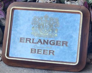 Vintage 1979 Erlanger Mirrored Glass Beer sign with a deep plastic frame Jos Schlitz Brewing Co 16"x 11.5"$20Sacramento, CA
