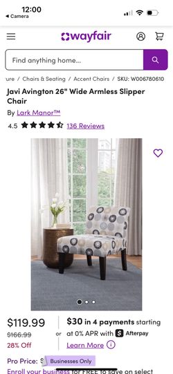 Two - 26" Wide Armless Slipper Accent Chairs$140Menifee, CA