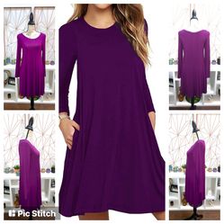 Women's Comfy Casual Loose Swing Tunic Long Sleeve Pocket Solid T-Shirt Dress - Size: Small - Color: Purple $15Westminster, CO
