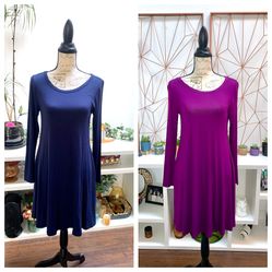 I have (2) Women's Comfy Casual Loose Swing Tunic Long Sleeve Pocket Solid T-Shirt Dress - Size: Small - Color: Navy Blue & Purple $25Denver, CO
