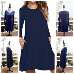 Women's Comfy Casual Loose Swing Tunic Long Sleeve Pocket Solid T-Shirt Dress - Size: Small - Color: Navy Blue$15Westminster, CO