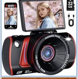 4K Digital Camera for Photography, 64MP WiFi Vlogging Camera for Beginners with 3" 180° Flip Screen, 18X Digital Zoom, Point and Shoot Cameras for You$52Corona, CA