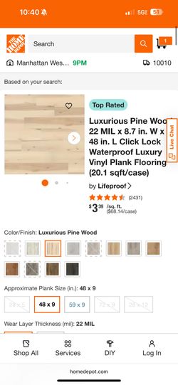 Lifeproof Luxurious Pine Wood LVP Waterproof 8.7. X 48 In $35Los Angeles, CA