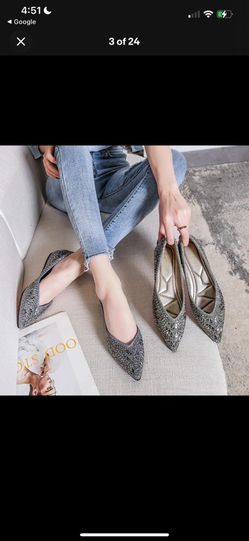 Women's Pointed Rhinestone Silver Bling Flats Slip On Shoes Glitter Comfortable SIZE 10$40Glendale, AZ