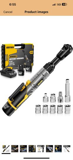 3/8" Cordless Ratchet Wrench Set, 60FT-LBS(80N.m) Electric Ratchet, 12V Extended Power Ratchet Wrench Set with Variable Speed, 6 Sockets, LED Light, 1$60Pompano Beach, FL