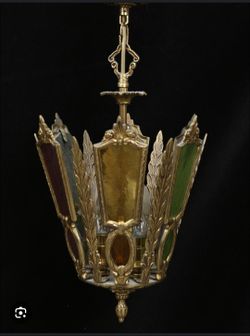 ANTIQUE FRENCH SOILD BRASS WITH REAL COLORED STAINED GLASS HANGING CHANDELIER / LAMP WITH ORNATE DETALING. INCLUDES CELING MOUNT TO LIGHT BOX$280Franklin Square, NY