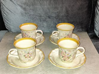 VINTAGE MIKASA GARDEN CLUB EC-466 "TOMORROW'S DREAM" 4PC CERAMIC COFFEE & TEA MUG WITH 4PC SAUCER SET. $25Franklin Square, NY