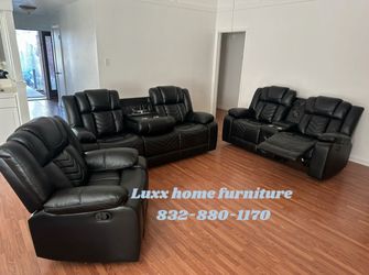 Brand New Ace Black - 3PC Reclining Set Sofa Drop Down Table w/ 2 Cup-Holders & Power Outlets Bluetooth Subwoofer Speaker in Loveseat $1,349Houston, TX