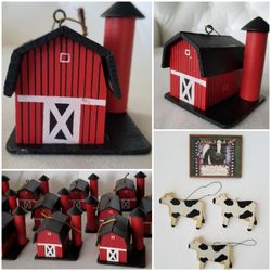 Vintage~Farmhouse~Set Of 15~Red Barn Wooden Christmas Ornaments ~Free Gift$45Spring, TX