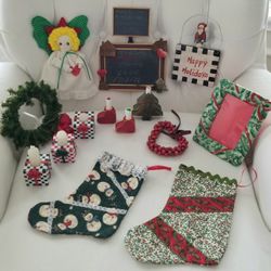 Vtg~Lot Of 15~Assorted Christmas Decor~Angel Tree Topper~Candleholders~Stockings$20Spring, TX