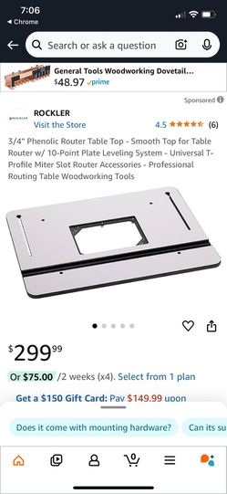 Rockler 3/4” Phenolic Router Table Top$190Deerfield Beach, FL