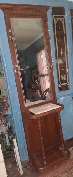 A Pulaski Company Solid Oak Hall Tree With Marble Top$68Holy Trinity, Alabama