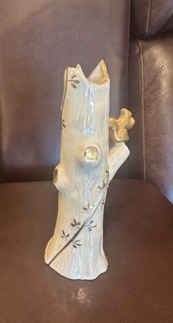 Vintage Lusterware Ceramic Bud Vase Tree Trunk Gold Squirrel Opalescent 8"$10Hialeah, FL