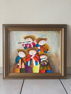 This artwork is a collectible reproduction painting by artist Joyce Roybal featuring a group of children playing musical instruments. $50Hialeah, FL