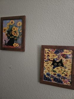 Now Only $25 For The Set Of 2. Beautiful 8x10 Custom Framed Artwork Of Little Black Cats. New, Never Used. $25Hesperia, CA