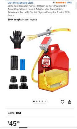 New! 2026-Fuel Transfer Pump - 3.8 Gpm Battery Powered by Auto-Stop, 51-Inch Hose, 4 Adapters for Natural Gas, Petroleum, Portable Electric Siphon Pum$32Las Vegas, NV