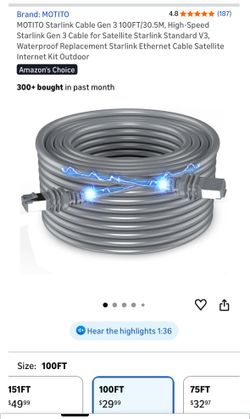 New! MOTITO Starlink Cable Gen 3 100FT/30.5M, High-Speed Starlink Gen 3 Cable for Satellite Starlink Standard V3, Waterproof Replacement Starlink Ethe$20Las Vegas, NV
