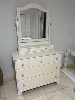 Pottery Barn White Dresser With Standing Vanity Mirror On Top. Originally Over 1.8k. $550Miami, FL