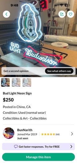 Bud Light Neon Sign $250Chino, CA