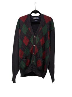 Vintage Ralph Lauren Red and Green Argyle Cardigan Size:XL$130Houston, TX