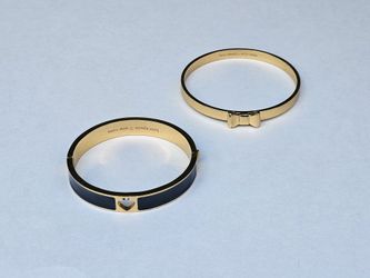 2 Kate Spade New York Gold Tone Bow Bangle Bracelets Take A Bow & Hole Punch Hinge$30City Of Industry, CA