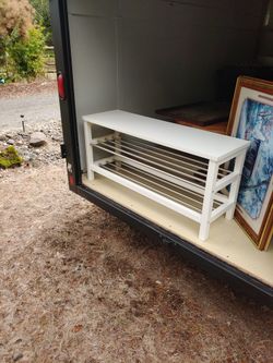 Sturdy White Bench With Two Shoe Racks Underneath Good Condition$40Kalama, WA