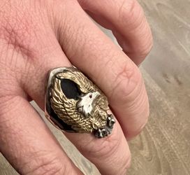 Vintage Navajo Ted OTT Sterling Silver Eagle Black Onyx Ring $85Las Vegas, NV
