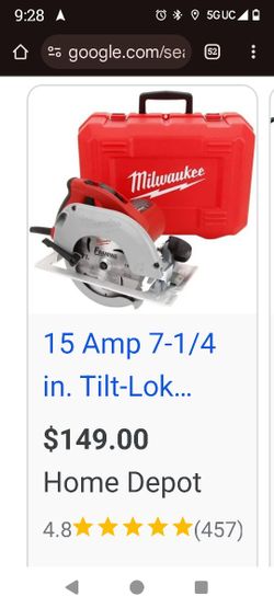 Like New Used Three Times On Small Jobs! Milwaukee Used 2 Times Corded Circular Saw / 15 Amp 7-1/4 in. Tilt-Lok Circular Saw with Hard Case$90Garden Grove, CA