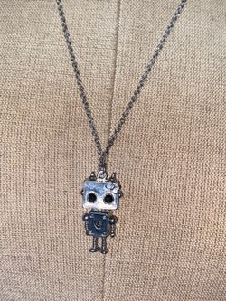 24” silvertone metal chain necklace hanging robot pendant rhinestone Good·NO LABEL $32Dracut, MA